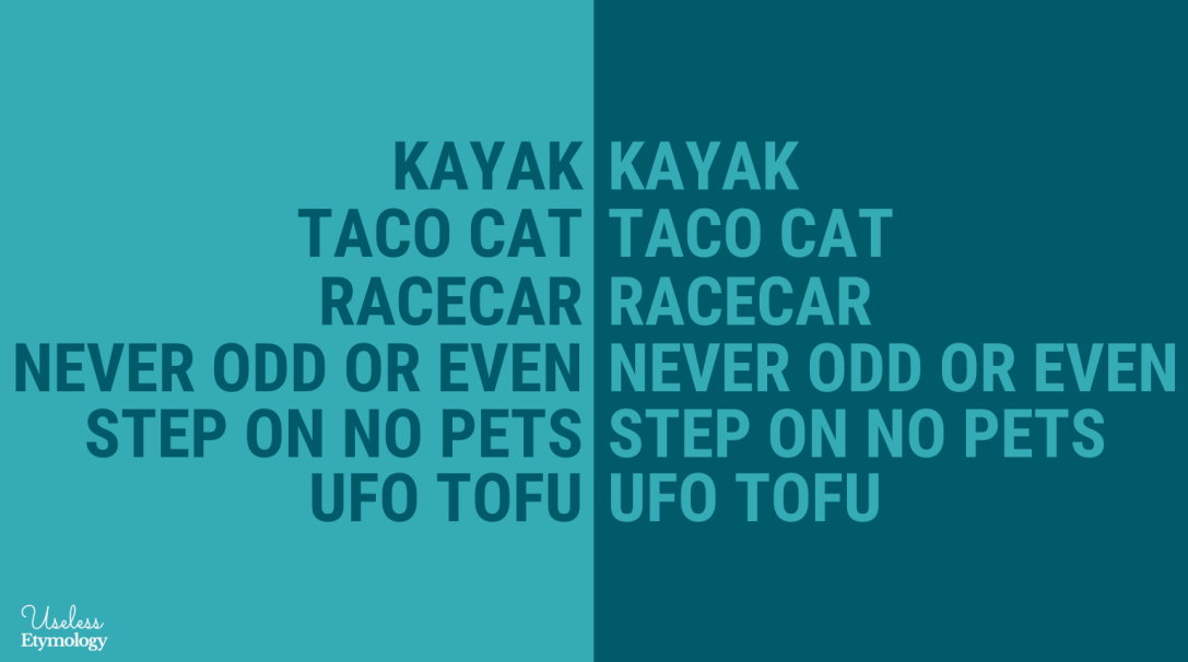A palindrome, as you likely know, is a word or phrase that reads the same backward and forward (KAYAK, ROTATOR, CIVIC). The word literally means "a running back," or "a running again" from the Greek palin, meaning "back, again," and dromos, meaning "a running. Dromos is also the source of "dromedary," a one-humped camel known… Continue reading On the Etymology of “Palindrome” and Other Forms of Wordplay