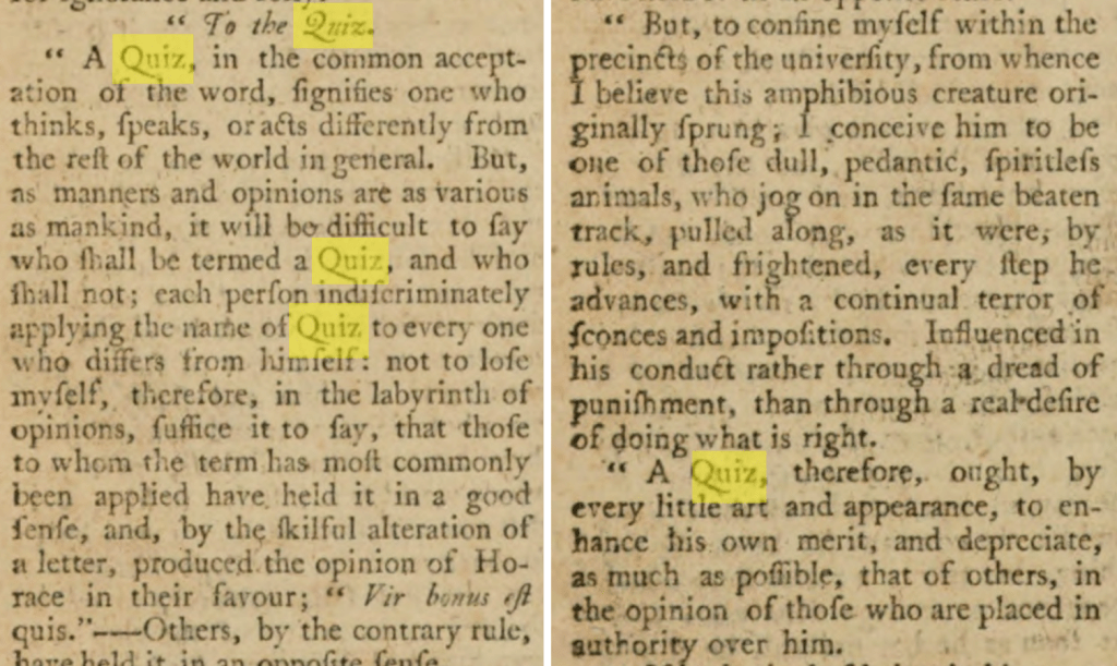 But this isn’t the first recorded of the sense of the word “quiz”: Several decades before that, it’s recorded as university slang for an “odd person.”