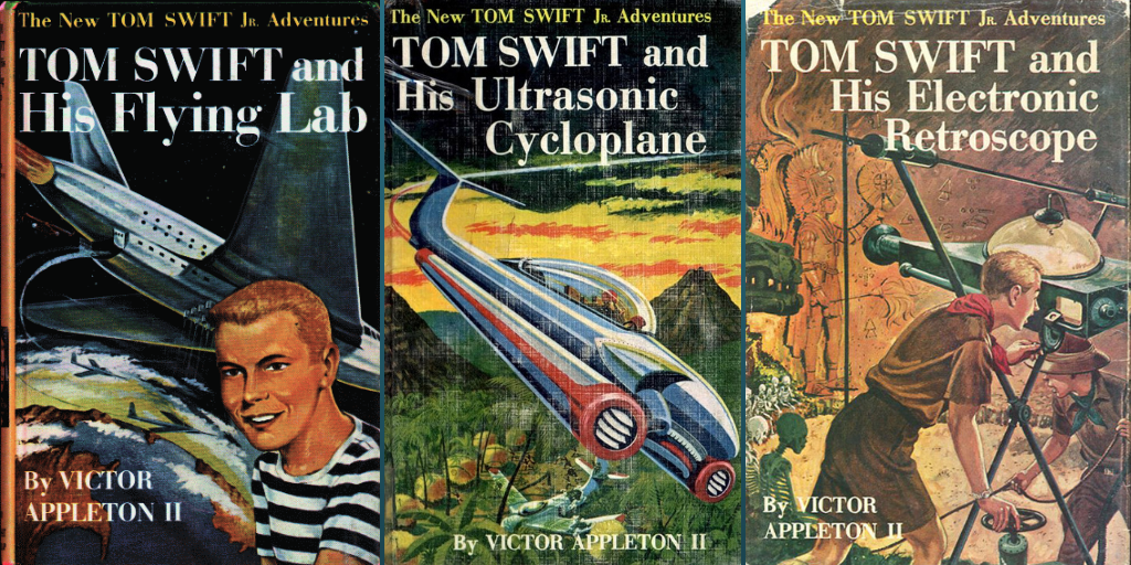 In this book series, Tom Swift is a teenage genius and inventor whose creations often reflect the latest innovations of the day and are, of course, used to thwart his ill-intended enemies. Each book focuses on one of his inventions, such as Tom Swift and His Flying Lab or Tom Swift and His Giant Telescope. (Evidently the latter is not intentionally phallic.)